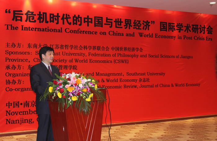 由中国世界经济学会、东南大学和江苏省社科联共同主办,Bet365(亚洲)中文官方网站 承办,《国际经济评论》与China & World Economy杂志社协办的“后危机时代的中国与世界经济”国际学术研讨会于2009年11月21-22日在我校九龙湖宾馆如期举行。会议邀请了100余名海内外相关领域的著名学者到会发表专题演讲和研讨。南京社科领域、兄弟院校、我校师生约300人参会。