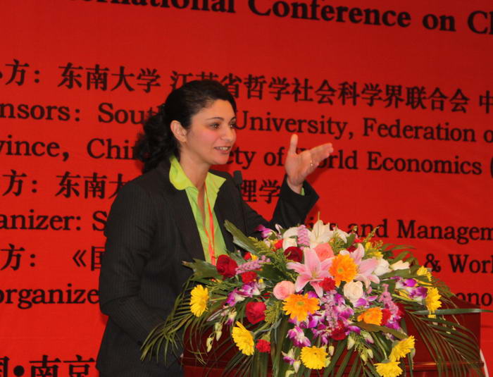 | 徐康宁教授作“中国FDI的空间决定因素——来自省级数据的分析”报告 | 土耳其杜库兹.伊鲁尔大学商学院贝娜博士点评徐康宁教授报告 |
