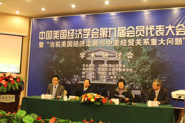 2012年11月17日,中国美国经济学会在东南大学成功举办了以“当前美国经济走势与中美经贸关系重大问题”为主题的中国美国经济学会第九届会员代表大会。此次会议由中国美国经济学会主办,bet365亚洲官网 承办。学会顾问陈宝森研究员、李长久研究员、刘崇仪教授等著名学者以及90余位来自中国社科院、清华大学、南开大学、浙江大学、复旦大学、武汉大学、厦门大学等著名学府的专家学者参加了此次会议,就贸易协定、区域合作与美国经济政策走向,财政政策发展、货币体系改革与美国国际经济地位演变,汇率走势、新型全球治理和中美经贸关系展望等三方面的问题展开了广泛而深入的探讨和交流。