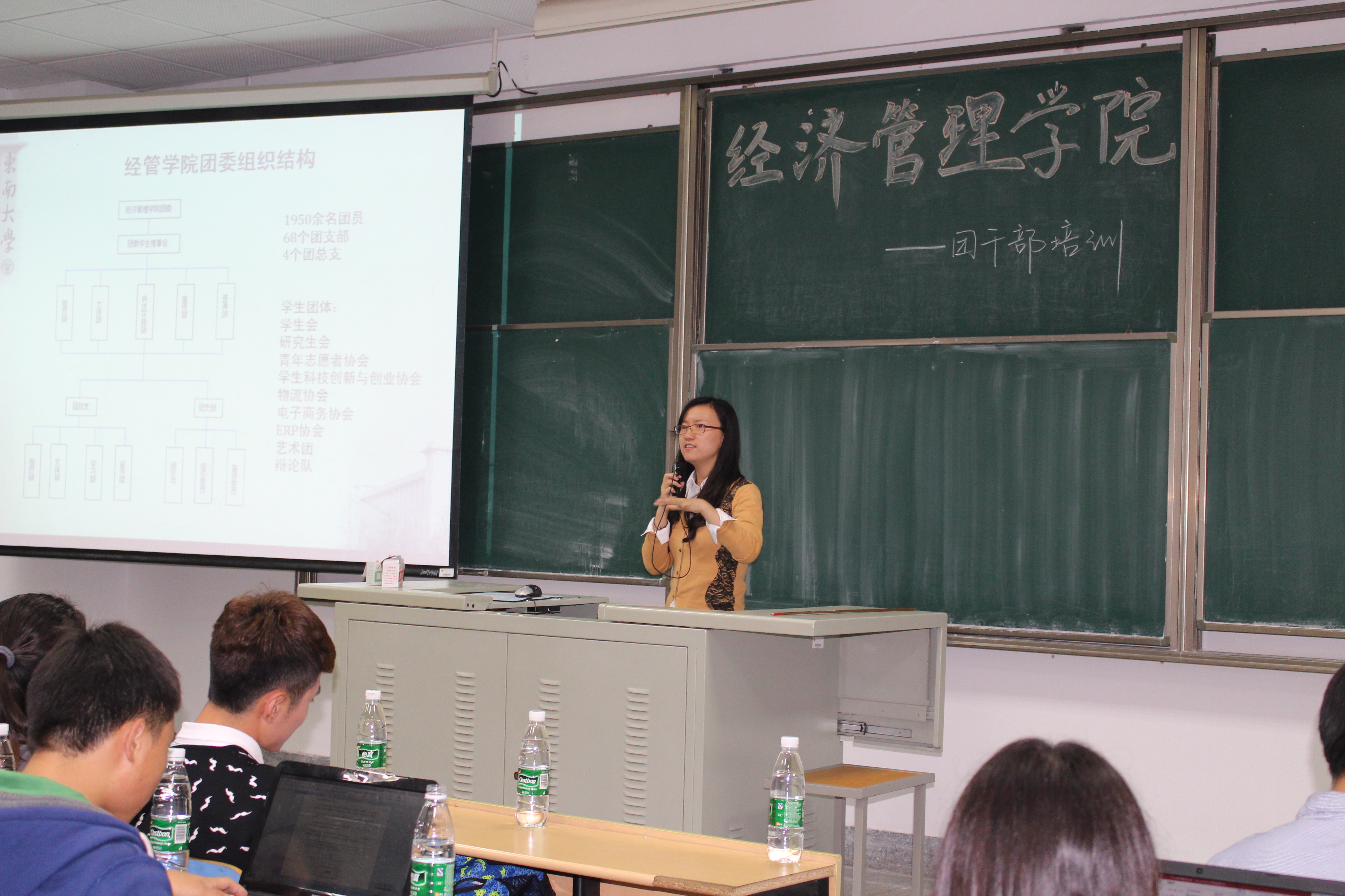 团干部培训会在本科第二教学楼205教室举行。出席本次会议的有团委书记林琼老师,本科一年级辅导员张丹丹老师,本科二年级辅导员祝逸超老师,本科三年级辅导员杨明睿老师,同时参加会议的还有团委学生理事会各部门负责人及干事,各年级团总支及各班班委。