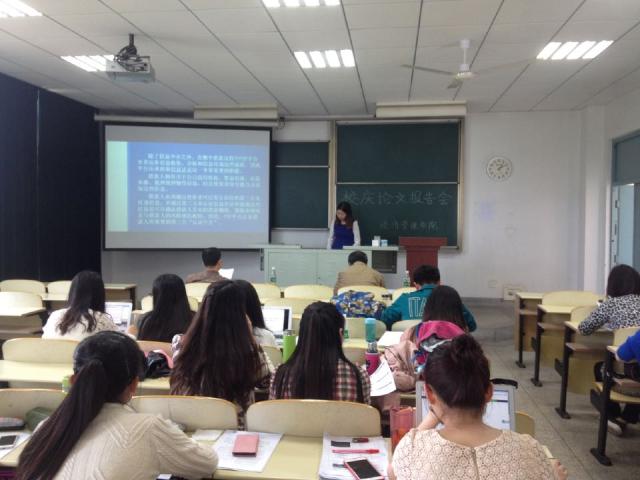 在报告会开始前,同学们提前到场,在工作人员的引导下将报告论文的PPT提前拷进电脑里。报告会开始后,同学们按照安排表顺序依次上台结合PPT阐述自己论文的总体框架、选题背景、研究问题、研究方法和研究意义等。专家老师们对每位学生的论文都分别从论文结构、研究方法、数据收集和分析方法等方面提出了存在的问题并给出中肯的建议,使同学们认识到自己论文存在的不足之处,明确了未来进一步改进的方向。