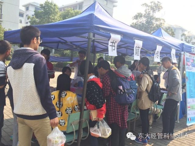 至15日上午十一点,借书活动正式于梅园食堂门口开始。书香浓浓,笑语盈盈,人山人海。围观的同学在听完工作人员的热情的介绍后,都对本次活动产生了极大的兴趣各色书籍分类明晰,同学们在一片书的海洋中尽情遨游,各取所需,既收获了知识也得到了上一届学长学姐的勉励。与此同时,工作人员轮流一丝不苟地进行借书登记工作,一切有条不紊。整个活动如火如荼,直至中午十二点半后,本次收集的旧书基本完全被借阅。科协的工作人员继续完成本次工作的收尾。