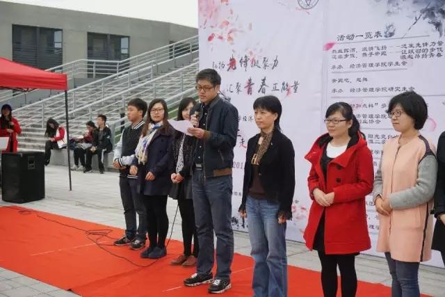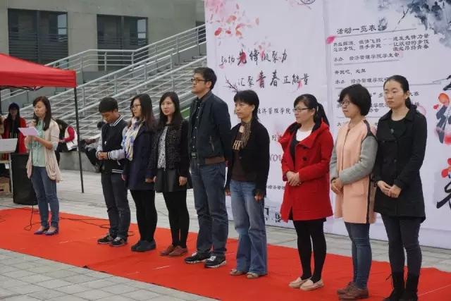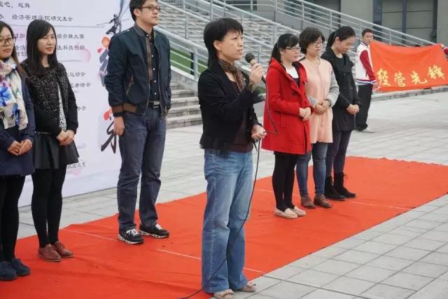 2015115日中午十二点半于体育馆西侧,“弘扬先锋凝聚力,汇聚青春正能量”——bet365亚洲官网 “三走”系列活动月开幕式在共青团bet365亚洲官网 委员会的组织下成功举办。参与本次开幕式的有bet365亚洲官网 党委副书记兼副院长祝虹老师,bet365亚洲官网 党委副书记朱宏涛老师,bet365亚洲官网 团委书记、2015级本科生辅导员林琼老师,bet365亚洲官网 团委副书记、研究生辅导员孙靓老师,bet365亚洲官网 团委副书记、2014级本科辅导员张丹丹老师,bet365亚洲官网 学办的张钒老师、蔡钰萍老师、钟业丽,以及来自经管院各个社团及年级团总支的负责人代表。
