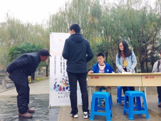 11月19日下午,志愿者们提前到达活动现场,摆放桌椅,布置展板。