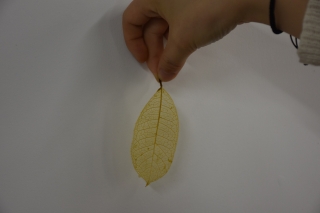 首先,选择外形完整,大小合适,具有网状叶脉的树叶。其次,用水将树叶刷洗干净,放在10%的氢氧化钠溶液中煮沸,当叶肉呈现黄色后取出,并用水将树叶上的碱液洗净。最后,将叶子平铺在瓷砖或玻璃板上,用试管刷或旧软牙刷慢慢刷去叶肉。将剩下的叶脉放在水中轻轻清洗,稍微晾干后,夹在书中压平。