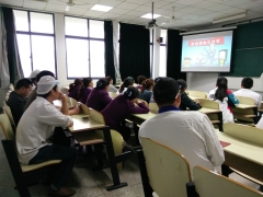 2017424日,金融知识万里行之走进食堂后勤活动于下午14:00于纪忠楼教室开展。由志愿者分别介绍防诈骗知识及被诈骗后的应对措施。因为内容都是志愿者搜集到的后勤人员想要了解的知识,因而解答过程十分顺利,后勤人员认真聆听。