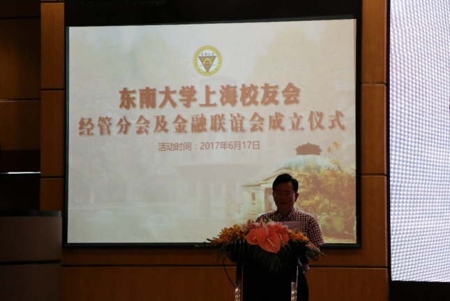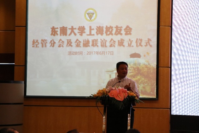 2017年6月17日下午,东南大学上海校友会经管分会及金融联谊会成立大会在上海隆重召开。东南大学校友总会副秘书长曹军、杨丽荣,继续教育学院院长许映秋,bet365亚洲官网 院长赵林度、副书记祝虹,上海校友会执行副会长兼秘书长李华彪,上海校友会经管分会、金融联谊会会长陈乃道,以及在上海的bet365亚洲官网 各年级校友代表,就职于金融行业的校友代表等100余人参加了会议。会议由bet365亚洲官网 校友徐健、葛忻悦主持。