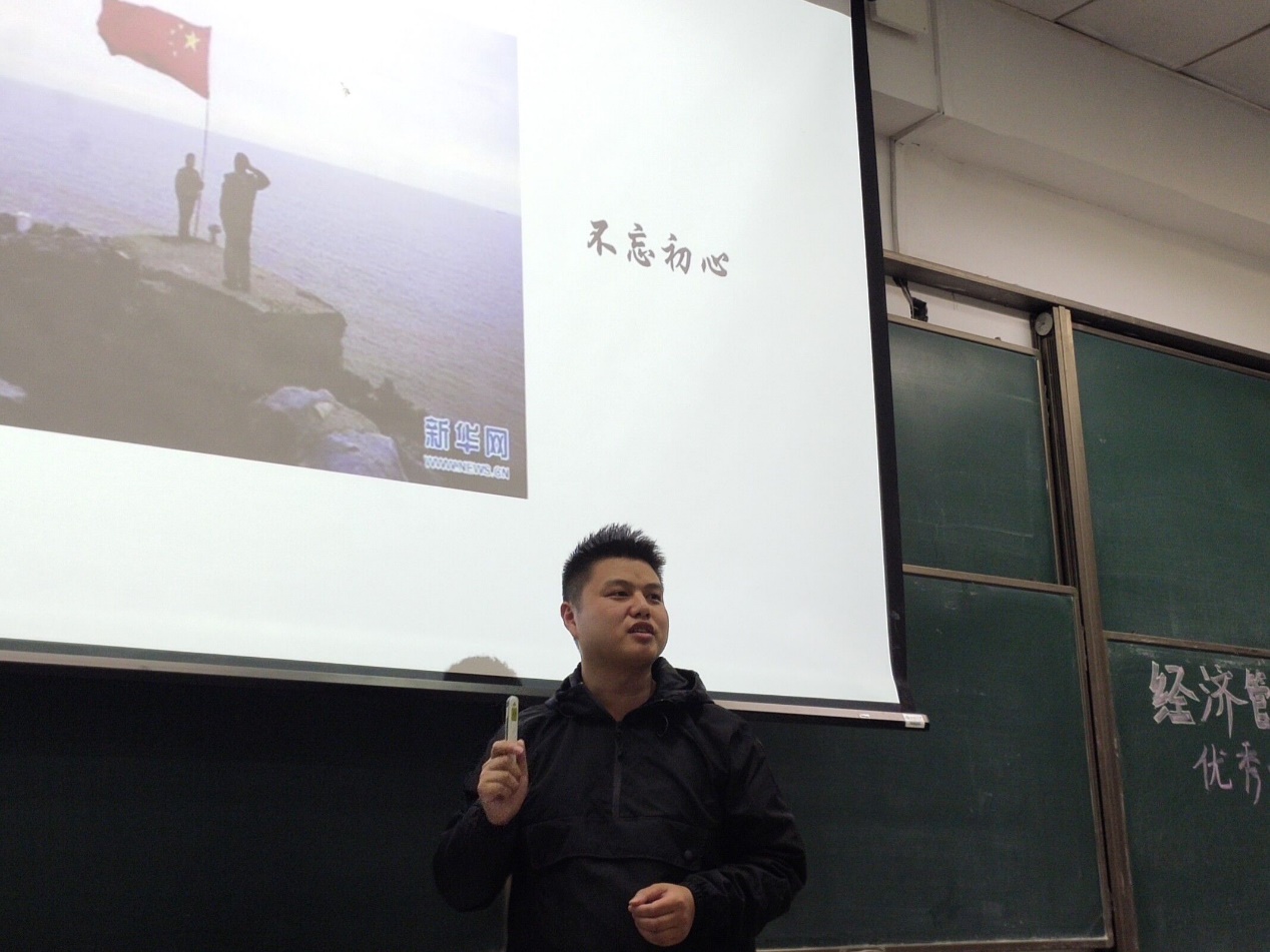 杜聪同志曾作为校大学生应征入伍,荣获“优秀士兵”两次、旅团级嘉奖多次,现任bet365亚洲官网 博士研究生至善党支部书记。杜聪同志从一个退伍军人的视角给同学们分享了他的军旅生活。他先从同学们对军旅的向往开始聊起,谈到大家对军旅生活的印象时,又分别从英姿飒爽、威武雄壮、铁血刚毅三个角度描述了他眼中的军旅。他还分享了三个故事,我们可以感受到军旅锤炼党性修养:从红军长征经历的艰难险阻出发,他鼓励大家追求信仰,做家国情怀追梦者;聊起战友入伍期间的改变时,他呼吁大家无惧挑战,做思想技能突破者;说完王继才夫妇坚持戍守开心岛的故事,他提醒同学们不忘初心,做本职岗位的坚持者。最后他号召全体同学拥有一颗兵心,坚持探究真理。