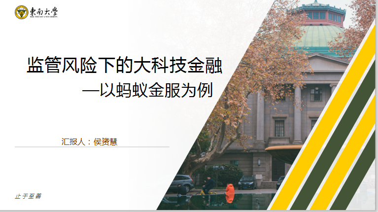 蔡广谦:侯赟慧老师从监管角度以蚂蚁金服为例为我们分析了大科技金融的发展。近年来,金融科技利用高杠杆快速发展,体量急速膨胀,为我们提供了多样的金融服务,也带来了极大的监管风险。我国目前的监管态势不断趋严,由宽松监管、鼓励创新转向严格监管、严防风险。体现出国家对于防范系统性重要风险的严格态度,也为未来金融科技业的发展指明了方向。我们作为当代大学生党员,是金融科技快速发展的亲身体验者与直接受益者,在充分利用金融科技带来的巨大好处的同时,也不能掉以轻心,而应时刻注意身边的风险暴露点,加强风险防范意识,提高专业素养,为金融科技的进一步发展贡献一份力量。