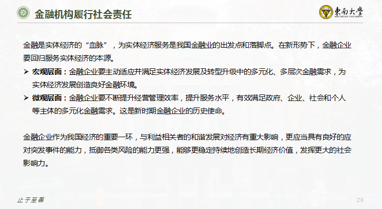 丁钰同学认为大科技金融是科技与金融结合的必然现象,其特点鲜明、优势突出,但也存在一些值得关注的风险点和需要进一步深入思考的新问题。其客户规模的广度、业务规模、交易频次等特性,又使得它和交易频次不高的传统金融机构的风险不同,需要区别对待和差别测算。因此构建金融科技监管的长效机制是很有必要的。疫情之下,医务工作者、警察、街道、社区干部、市政管理者、物业管理者等这些最美“逆行者”都是爱国主义的具体体现。我们所见的那些令人热泪盈眶的感动,是团结,更是新时代爱国主义的精神。而作为金融专业的学生,我们也应该提高自己的专业技能,为我国金融业做出贡献,把个人理想融入党和国家的事业中。