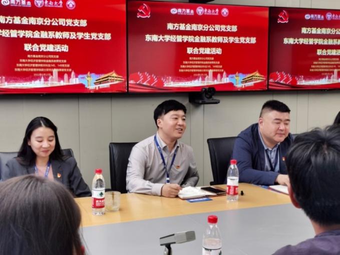 在积极热烈的氛围中,南方基金南京分公司的党员同志与东南大学的同学们进行了深入交流,南方基金南京分公司的负责人对同学们关心的招聘以及工作内容等问题进行了详细全面的解答。最后,南方基金南京分公司党支部的张总也对东大金融学子提出了殷切希望与寄语“珍惜在校时光,掌握专业知识”!