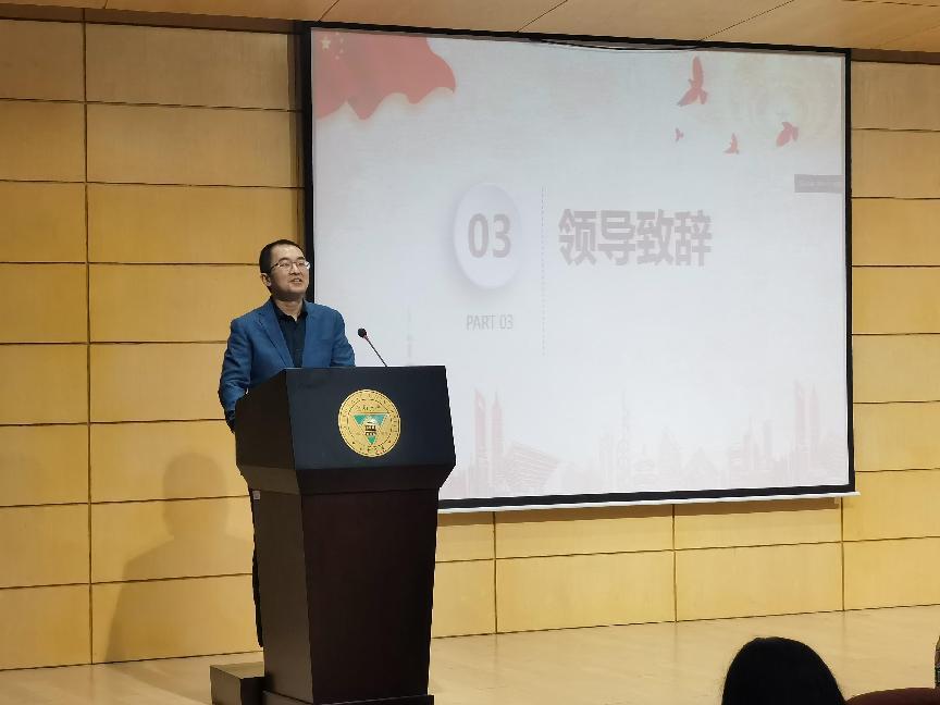 首先,本次活动有幸邀请到何熠书记莅临现场并为该仪式致辞。在讲话中,何书记以中共中央二十大召开为背景,提出听一堂好课是最美好的享受,对学生人生可能产生极大的帮助,要让“课比天大,生为首位”深入人心,希望同学们在东南大学学习生活期间,有高追求、有大情怀、有宽视野、有好思想、有严规矩,在最好的时代,做最好的学生。