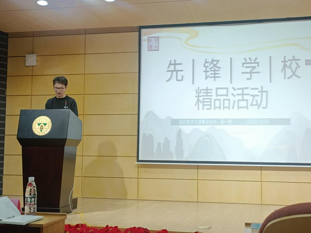 接着,院团委吴一恒会长发言强调了先锋学校的主要活动内容及其意义。