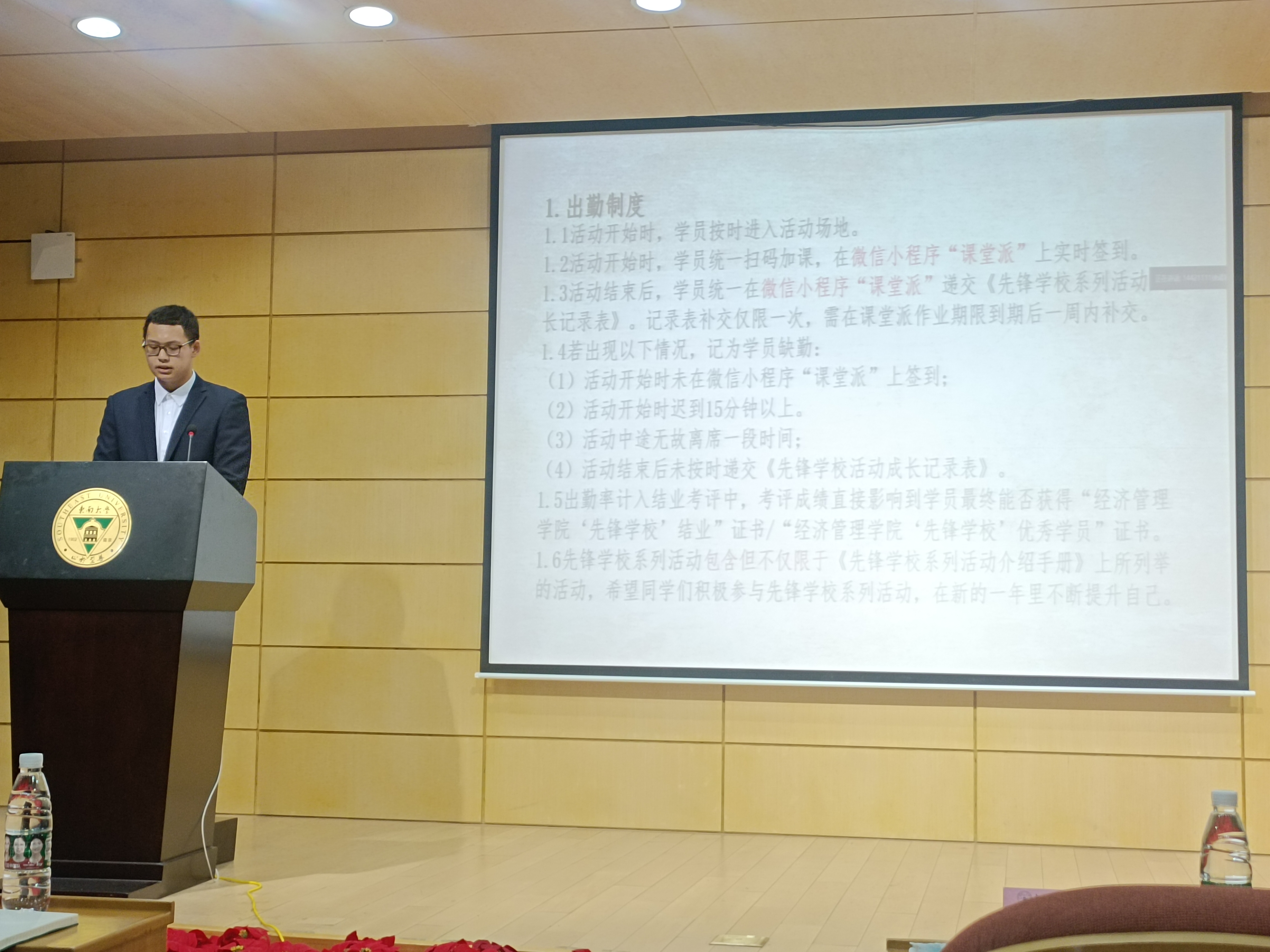介绍完毕后,院团委组织部副部长罗旭辰详细介绍了“先锋学校”各项制度