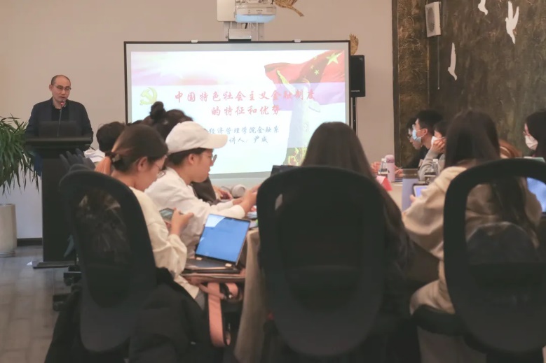 bet365亚洲官网 金融系教师党支部书记尹威老师以“中国特色社会主义金融制度的特征和优势”为主题,从金融制度的内在机理、本质特征、最大优势和根本保障四个方面进行了分享。