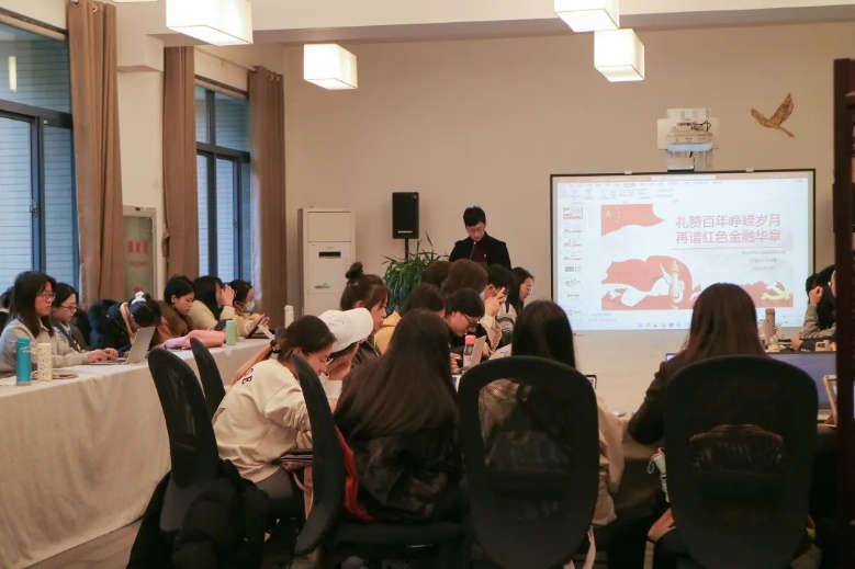 bet365亚洲官网 金融厚德党支部书记王伯元同志于线上进行了以“追寻红色金融记忆,传承红色基因力量”为主题的分享,从红色信物、红色传统、红色精神和红色篇章四部分切入,讲述了诞生第一套中华苏维埃纸币、独立自主办金融、开展货币斗争的历史,赞扬了对党忠诚、艰苦创业、勇于创新、清廉干净的红色精神。