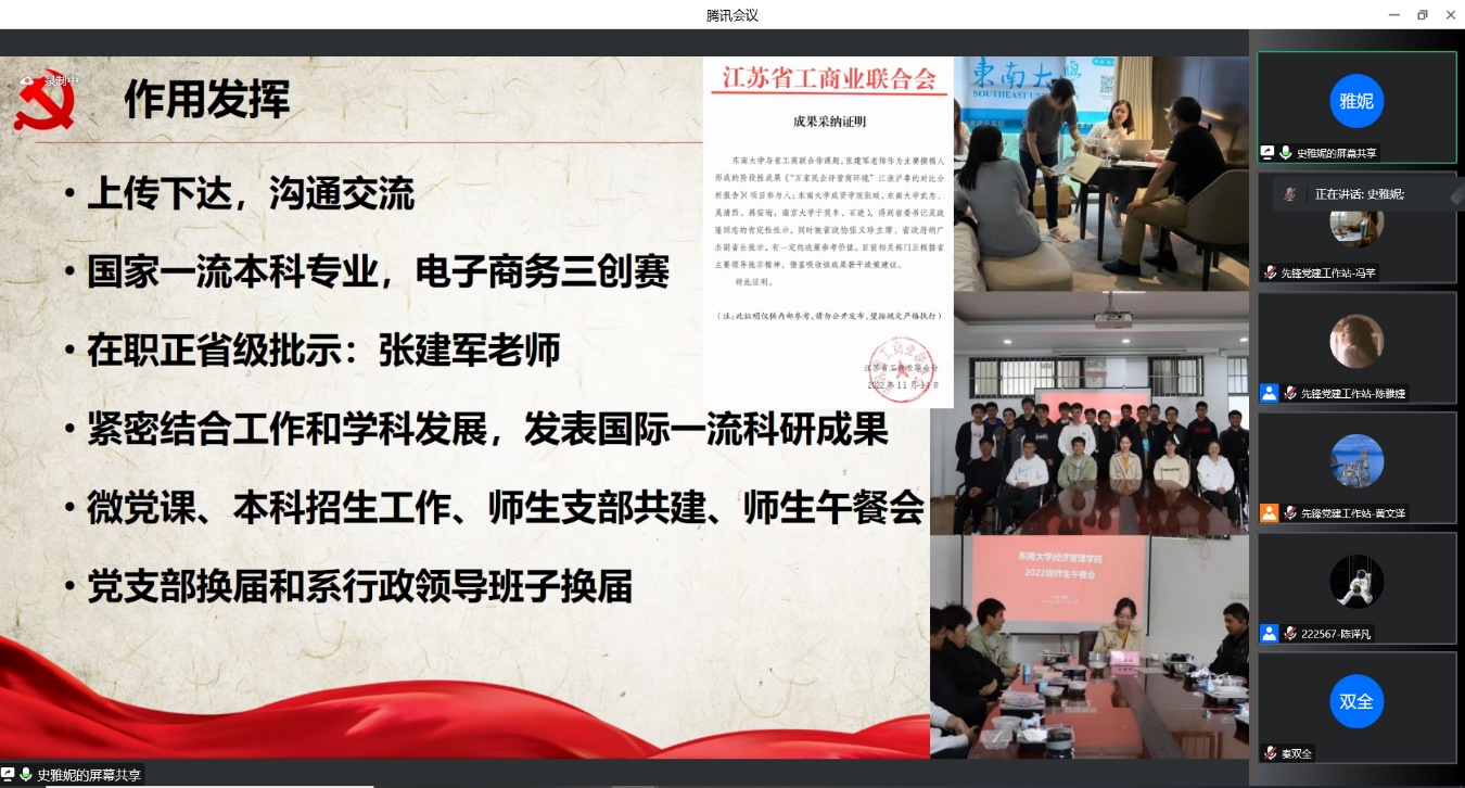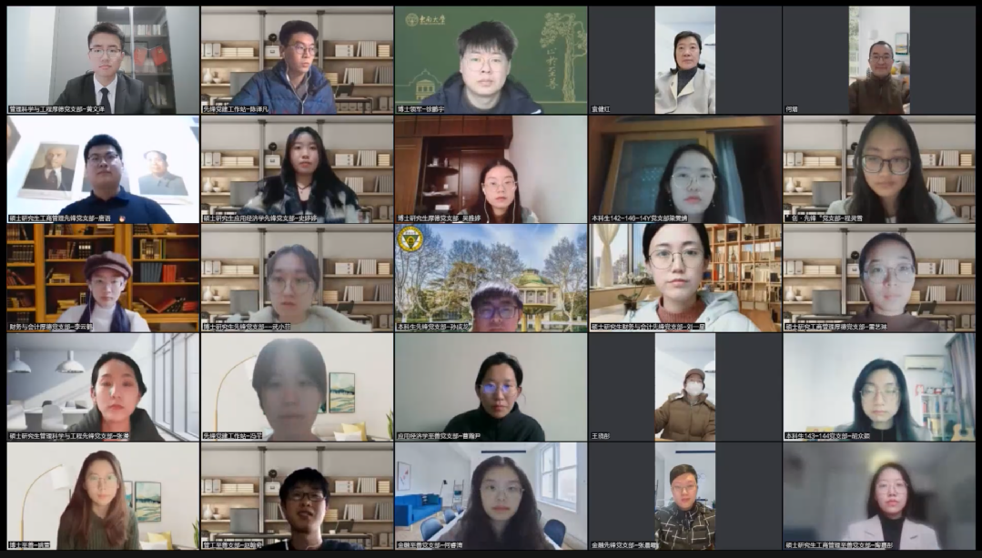 下午14时,学生党支部共29名支部书记回顾2022年支部建设的工作内容,总结党建工作的成就和不足,并对未来党建工作作出展望。