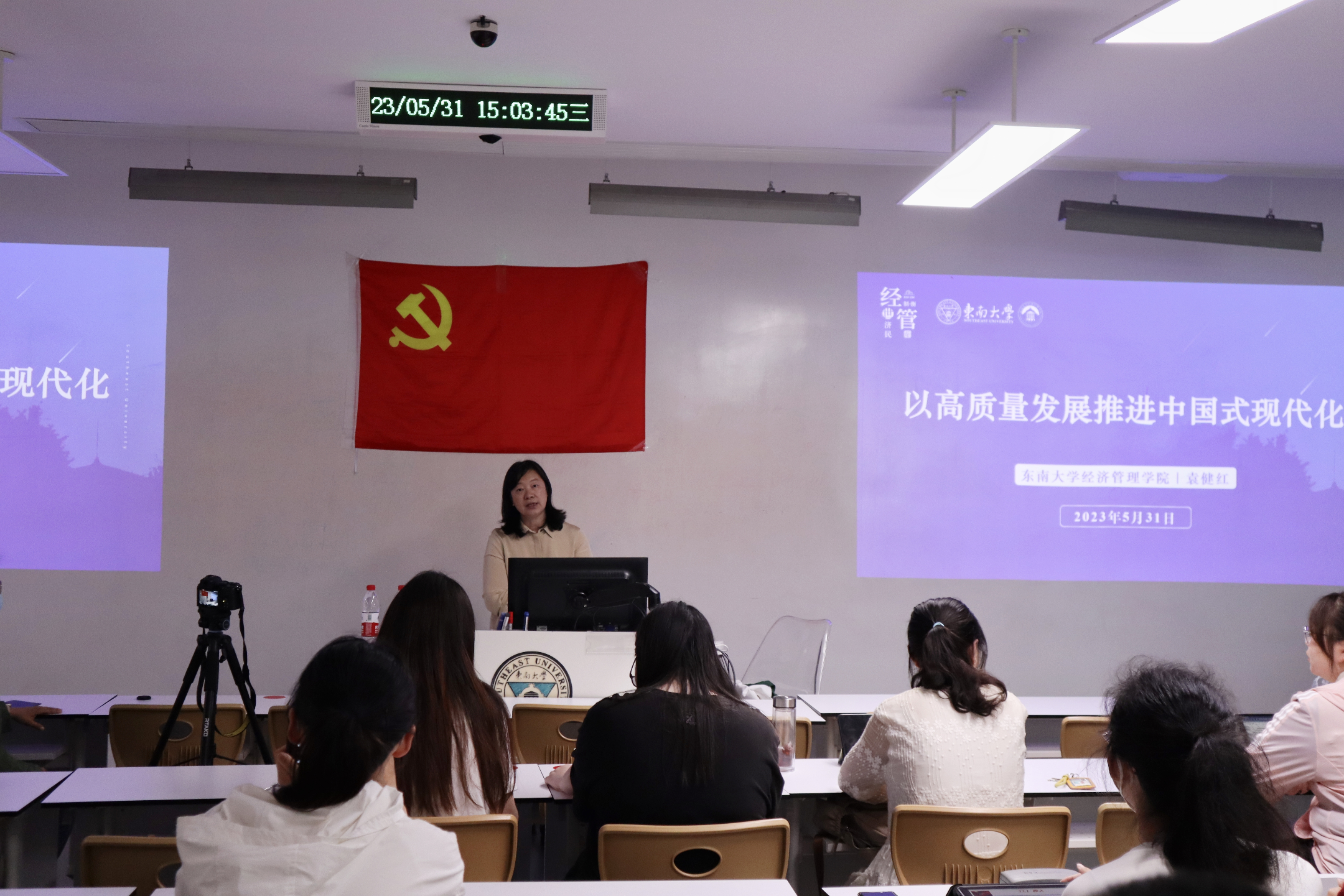 2023年5月31日下午,为深入学习贯彻党的二十大精神,bet365亚洲官网 党委举办献礼二十大“党课20讲”系列活动。本次党课邀请了bet365亚洲官网 党委书记袁健红为大家带来了题为《高质量发展推进中国式现代化》的专题党课。党课由本科生先锋党支部书记、2020级本科生辅导员孙成龙主持,bet365亚洲官网 党务秘书、博士研究生辅导员孙靓和本科生先锋党支部党员参加党课学习。