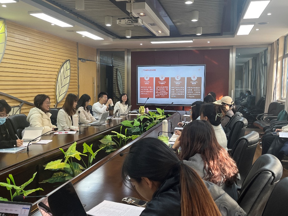江其玟老师以《VUCA时代当代青年学生党员如何守正创新与自我赋能?》为题,从什么是VUCA时代、为什么面向青年党员、当年学生如何守正创新以及当代青年学生党员如何自我赋能四个方面展开本次党课领学。