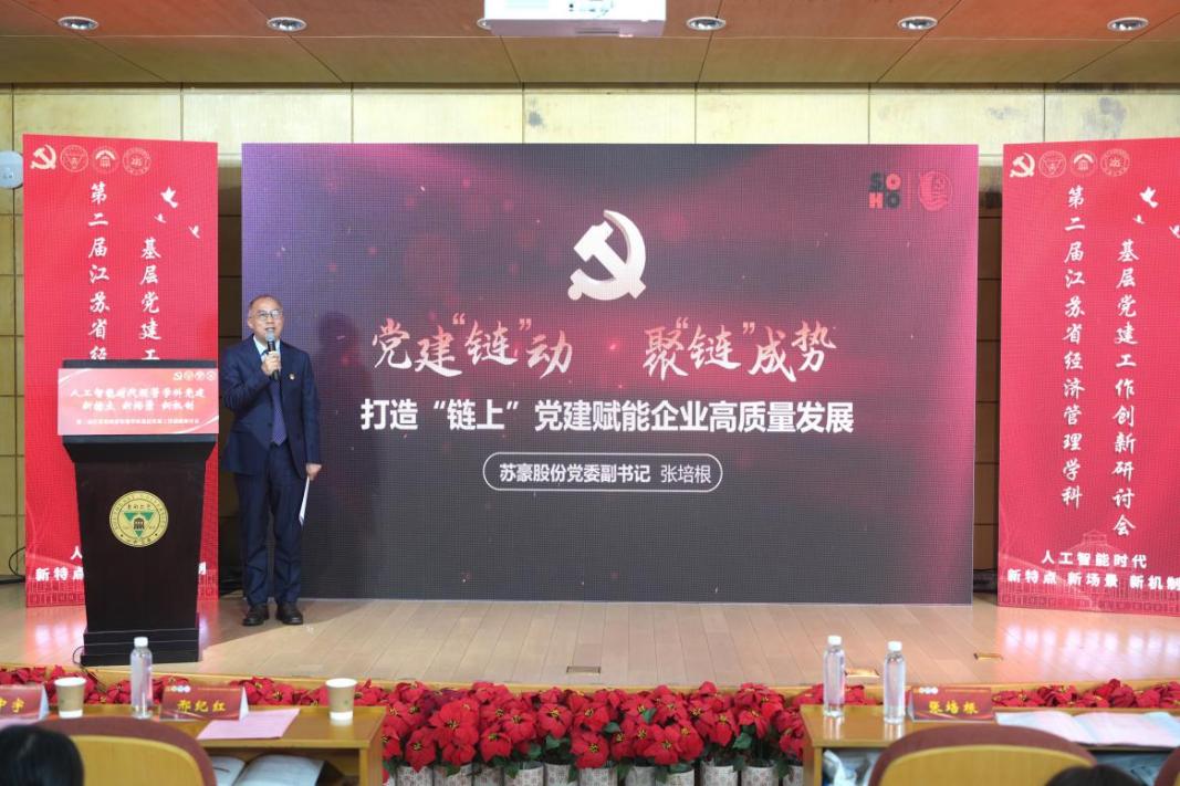 江苏省委教育工委组织处副处长张锦文在致辞中强调,要通过党建把好人才培养的“政治观”,坚持用习近平新时代中国特色社会主义思想铸魂育人,落实习近平新时代中国特色社会主义思想“三定”工作;要以党建把好学科建设的“定位关”,坚持支部建在学科上,推进党支部、研究所、学科方向、学术团队一体建设;要以党建把好学科发展的“脊梁关”,推动“党建+教学”“党建+科研”“党建+育人”,将高质量发展的导向融汇到经济管理学科建设各个方面。
