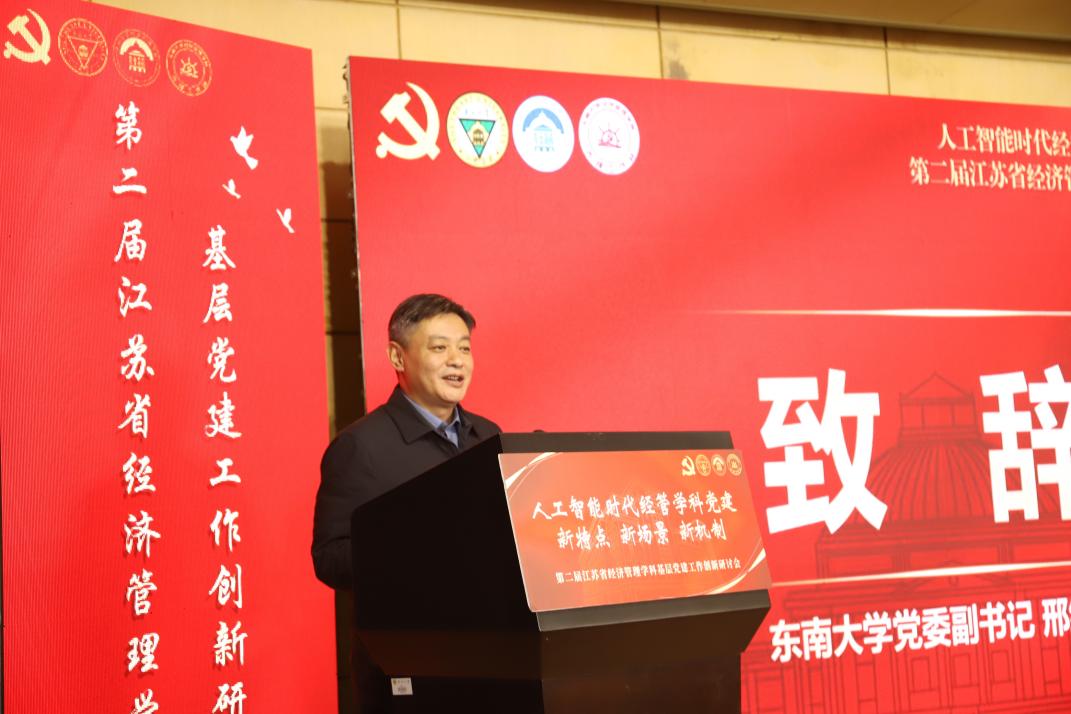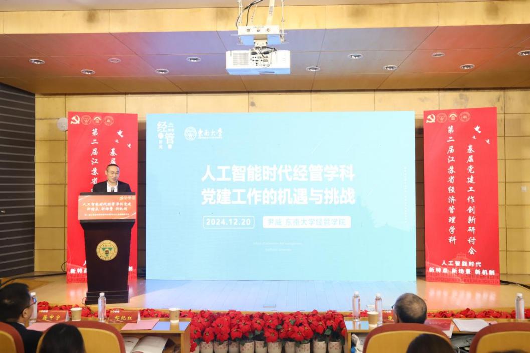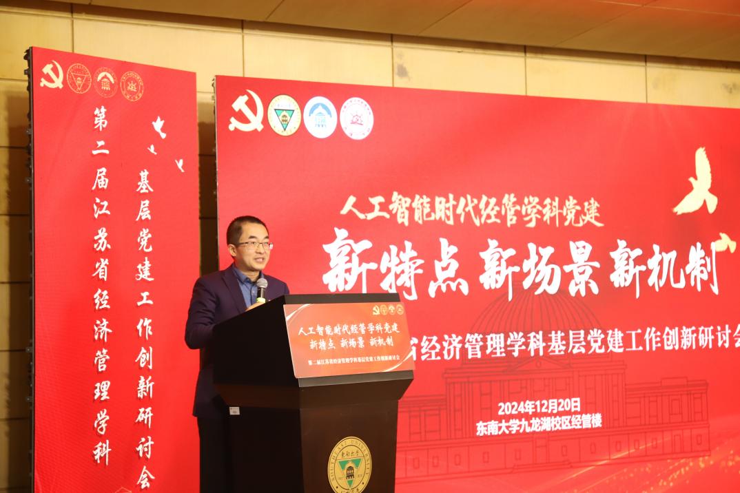 2024年12月20日,第二届江苏省经济管理学科基层党建工作创新研讨会在东南大学成功举办。研讨会由bet365亚洲官网 主办,学院先锋党建工作站承办。本届研讨会以人工智能时代经管学科党建新特点、新场景、新机制为主题,旨在深入学习贯彻党的二十届三中全会精神与全国教育大会精神。来自南京大学、东南大学、南京航空航天大学、南京理工大学、南京农业大学、南京师范大学、中国药科大学、中国矿业大学、江南大学、南京邮电大学、南京林业大学、南京信息工程大学、南京财经大学、南京审计大学、江苏科技大学、南通大学和人工智能领域专家学者及政府与企业代表齐聚南京,共同探讨新时代人工智能、党建、经管的有机融合与创新,分享经验、应对挑战。研讨会开幕式由bet365亚洲官网 党委书记袁健红主持。