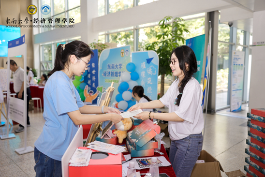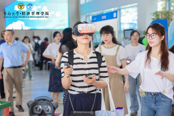 此次活动紧扣“学思想、强党性、重实践、建新功”的总要求,以东南大学地标为特色元素,设置吉祥物互动、数字油画创作、云端党史体验与入党志愿书提交四大环节。新生在进入经管楼大厅后,首先领取挑战赛入场券,随后依次打卡油画绘制、VR体验特色项目,感悟“党建+美育”“党建+黑科技”的别样魅力。