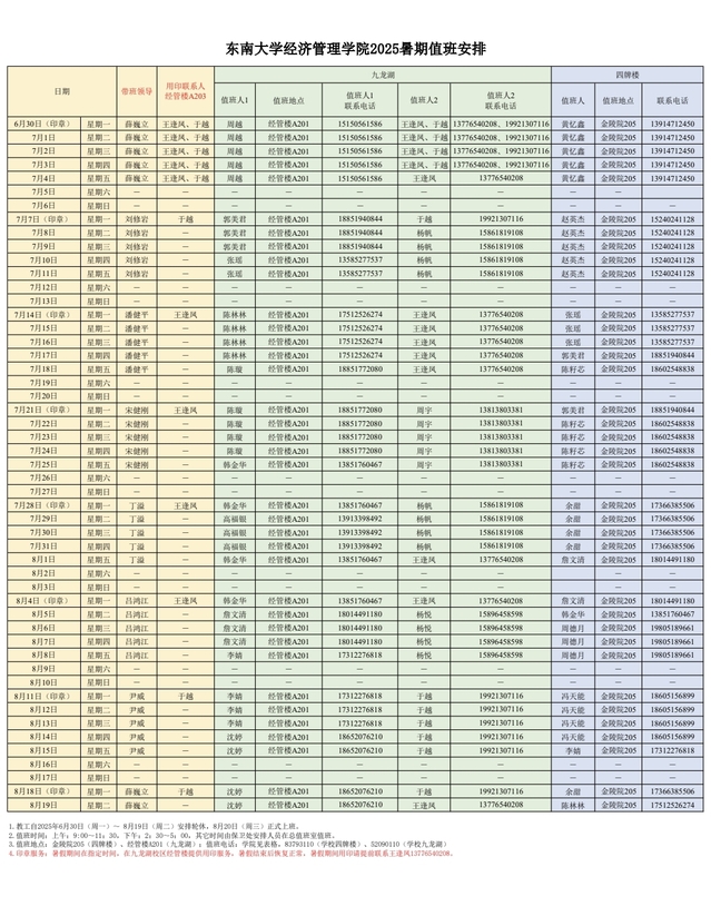 二、教职工从6月30日(星期一)至8月19日(星期二)在确保工作正常运行前提下安排轮休,8月20日(星期三)正式上班。学校中层干部离宁须按规定进行请假报备。