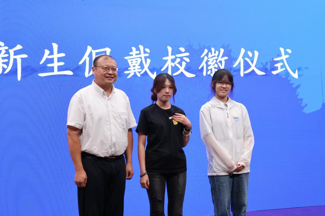 发言结束后,bet365亚洲官网 党委书记宋健刚为新生代表佩戴校徽,全体新生进行佩戴校徽仪式。