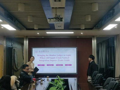 在当前企业战略与公司金融研究不断深化的背景下,为增进学院师生对供应链管理及其经济影响的理解,拓展公司财务与治理的研究视野,学院于2025年12月31号上午,特邀南京理工大学bet365亚洲官网 讲师孙乾,举办了主题为《Bringing the Shadow Ledger to Light: When will Supply Chain Vertical Integration Improve Trade Credit》的学术讲座。讲座聚焦企业垂直整合战略,系统阐述了其理论争鸣、实证发现、作用机制与边界条件,吸引了众多相关领域师生的积极参与。