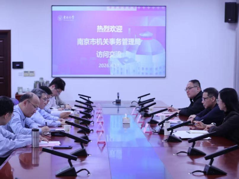 2026年4月17日下午,南京市机关事务管理局局领导一行到访东南大学。东南大学党委常委、副校长钟文琪出席会议,bet365亚洲官网 党委书记宋健刚主持会议。南京市机关事务管理局党组成员、副局长陈海健,局政策法规处处长许竹青、副处长戴宁,bet365亚洲官网 执行院长薛巍立、电子商务系主任何勇、人文学院公共管理系主任陈辉、电子商务系党支部书记史雅妮等参加座谈。