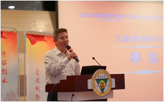 大家庭表示衷心祝贺和热烈欢迎。他详细介绍了学院的基本情况,特别是学院承袭东南大学百年商科发展的历史沿革、学科特色、科研和办学实力,希望同学们在研究生期间,按照东南大学培养“具有家国情怀和国际视野、担当引领未来和造福人类的领军人才”的定位要求,不断进取,做到有追求、有情怀、有视野、有思想和有规矩。