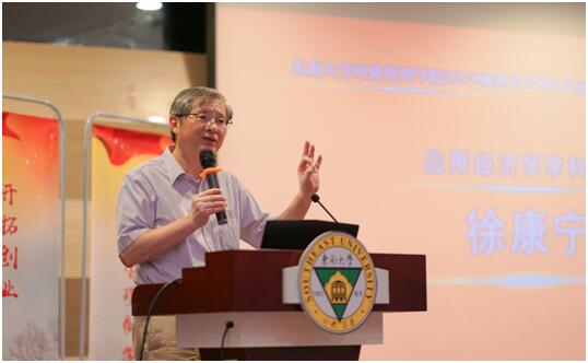 应用经济学学科带头人徐康宁教授介绍了应用经济学学科情况,深情回顾了参与创建经济学科,并见证学科发展至江苏省优势重点建设学科、第四轮学科评估B+,进入全国前20%、江苏并列第一的历程,希望新生有家国情怀、有高度追求,打好中文、外语和数理三个基本功,提高科研水平,为学院学科建设做出新的贡献。