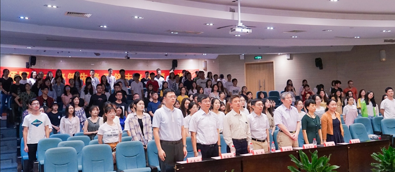 在庄严的国歌声中,2019级研究生新生师生见面会正式拉开帷幕。