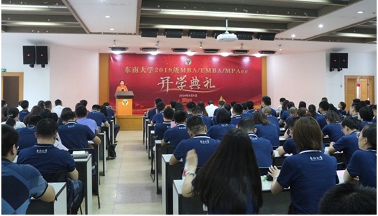 2019年9月8日下午,东南大学2019级MBA/EMBA/MPAcc开学典礼在逸夫建筑馆群贤楼三楼报告厅隆重举行。校党委常委、副校长金保昇,校党委常委、bet365亚洲官网 党委书记仲伟俊,研究生院常务副院长金石、副院长袁榴娣,bet365亚洲官网 党委副书记兼副院长祝虹,副院长张玉林、吕鸿江、浦正宁,以及教师代表、在校生代表及405位新生参加了典礼。典礼由吕鸿江副院长主持。