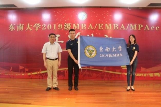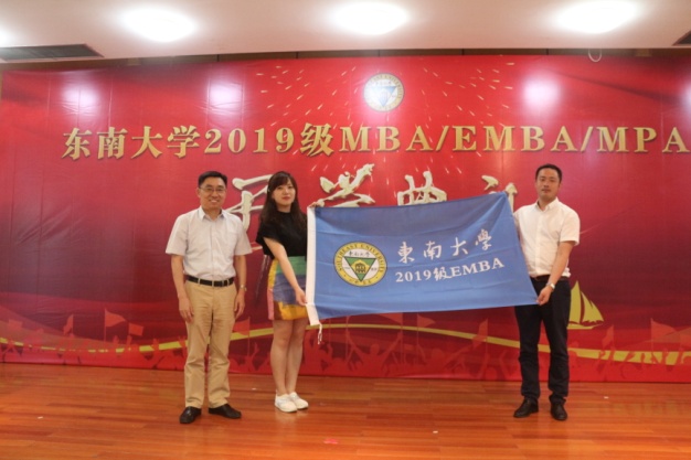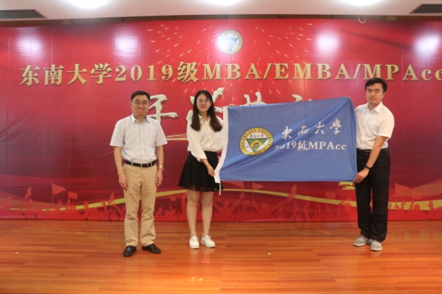 最后,仲伟俊书记为EMBA 、MBA、MPAcc新生代表授旗。开学典礼在高亢激越的《东南大学校歌》声中画上圆满的句号。2019级新同学三年的学习生活正式起航。
