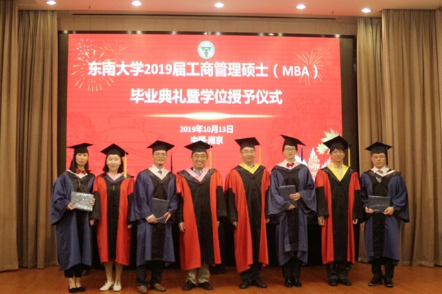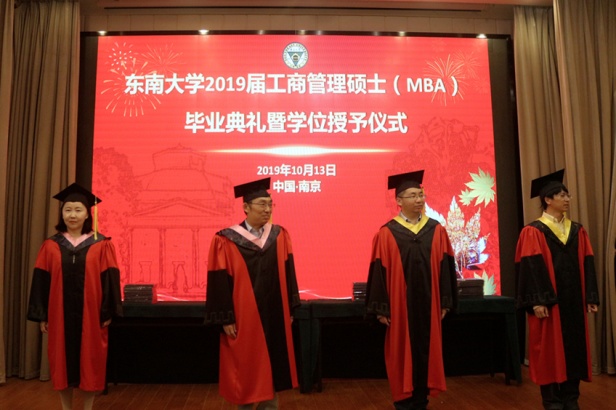 2019年10月13日,东南大学2019届工商管理硕士(MBA)毕业典礼暨学位授予仪式在四牌楼校区榴园宾馆新华厅隆重举行。东南大学党委常委、bet365亚洲官网 党委书记仲伟俊教授,研究生院常务副院长金石教授,校研究生学位办公室主任吴在军教授,以及bet365亚洲官网 祝虹副书记,江苏众阳新能源集团公司董事长王强校友等领导和嘉宾出席。毕业典礼暨学位授予仪式由bet365亚洲官网 副院长吕鸿江教授主持。