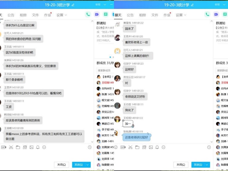 学生在王轶伟老师《统计学》课程群中讨论交流