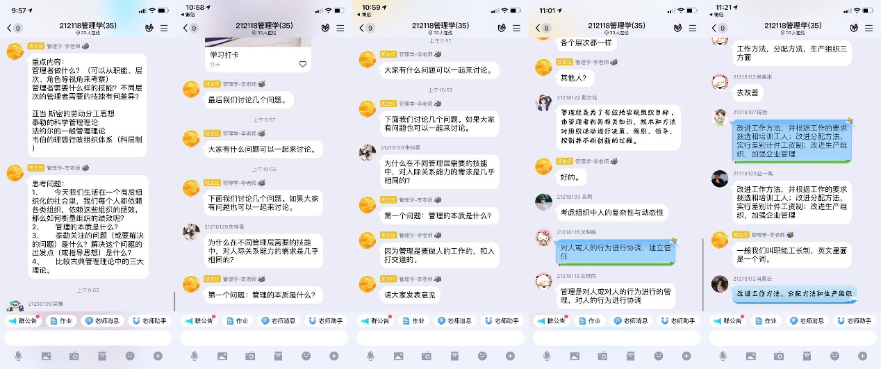 李春生老师在《管理学》课程群布置习题引导学生讨论