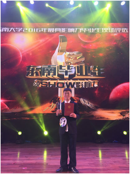曾获荣誉:江苏省优秀学生干部、江苏省高校科学营先进个人;东南大学三好学生、学生干部、优秀团干、优秀共产党员、最具影响力毕业生、暑期社会实践优秀指导教师、优秀团务工作者、优秀研究生干部等。