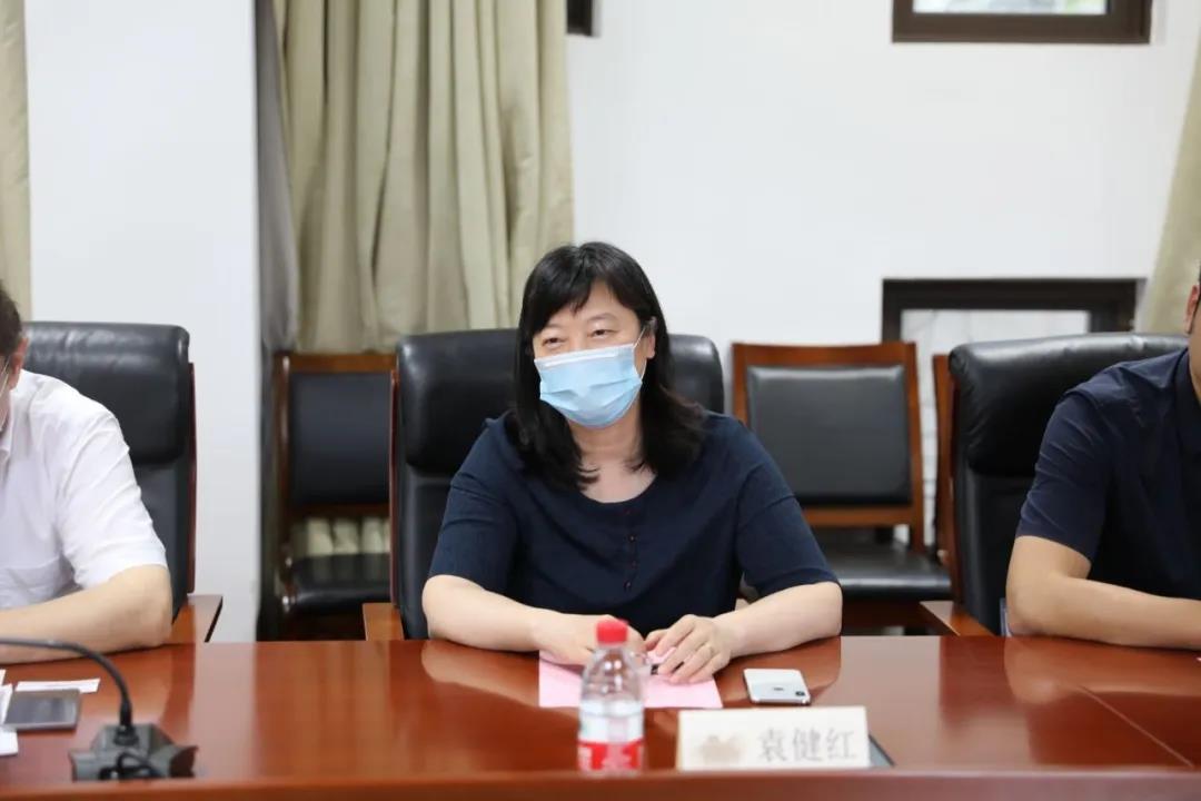 党委书记袁健红对泽稷教育给学生送来的关怀表示感谢,并介绍了学院的发展及人才培养现状,希望双方优势互补,共同期待全方位的交流合作,包括课程开发、相关研究等。