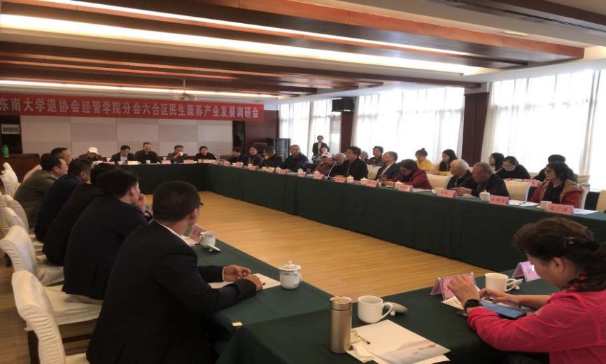 下午1点,师生们与六合区民政局、金牛湖街道办事处的主要官员及恒大集团养生谷的负责人在茉莉花酒店会议室一起参加调研座谈会。六合区民政局局长陆兵及金牛街道办事处主任卞化、王俊华副主任先后对六合区和金牛湖街道“十四五”期间养老保障民生服务方面的工作情况作详细的介绍,恒大集团养生谷领导作了产业服务民生保障的发言。东南大学达庆利、龚乐年、马新建、江孝感、陈为宇、张开荣、余珊萍、吴广谋等教授先后在会上互动交流、建言献策。大家根据现场考察体会,就金牛湖生态园、恒大养生谷的休闲生活体验及发展核心竞争力等方面的内容与当地政府、企业进行了积极对话,探讨六合区养老保障民生服务工程前瞻性对策。会议着眼于民生福祉展开热烈讨论,商定近期再议合作事宜。
