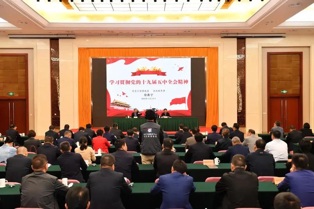 11月23日下午,江苏省委学习贯彻党的十九届五中全会精神宣讲团到中国石化仪征化纤举行报告会,省委宣讲团成员、省政府参事、中国世界经济学会副会长、东南大学首席教授徐康宁作宣讲报告。仪化公司总经理、党委副书记郭晓军主持报告会,对学习宣传贯彻十九届五中全会精神工作再做部署。