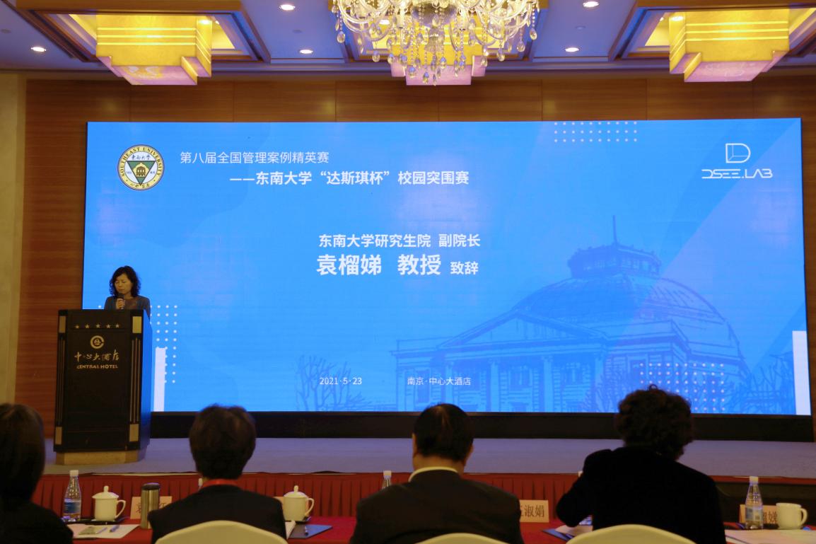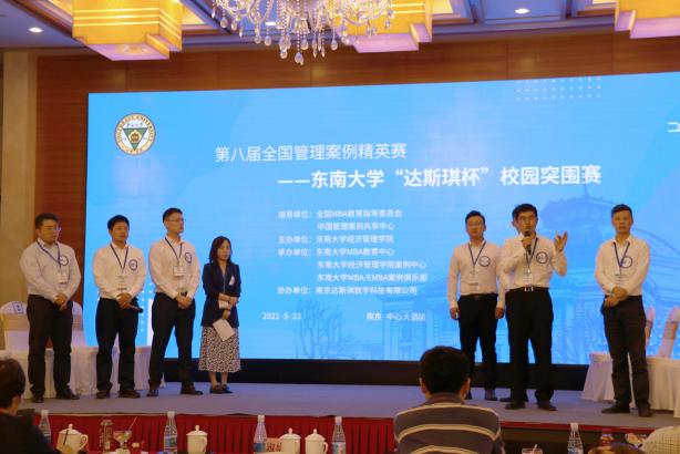 2021年5月23日,由全国MBA教育指导委员会、中国管理案例共享中心、中国管理现代化研究会管理案例研究专业委员会指导,bet365亚洲官网 主办,东南大学MBA/EMBA教育中心、bet365亚洲官网 案例中心、东南大学MBA/EMBA案例俱乐部承办,南京达斯琪数字科技有限公司协办的第八届全国管理案例精英赛——东南大学“达斯琪杯”校园突围赛在南京中心大酒店钻石厅隆重举行。