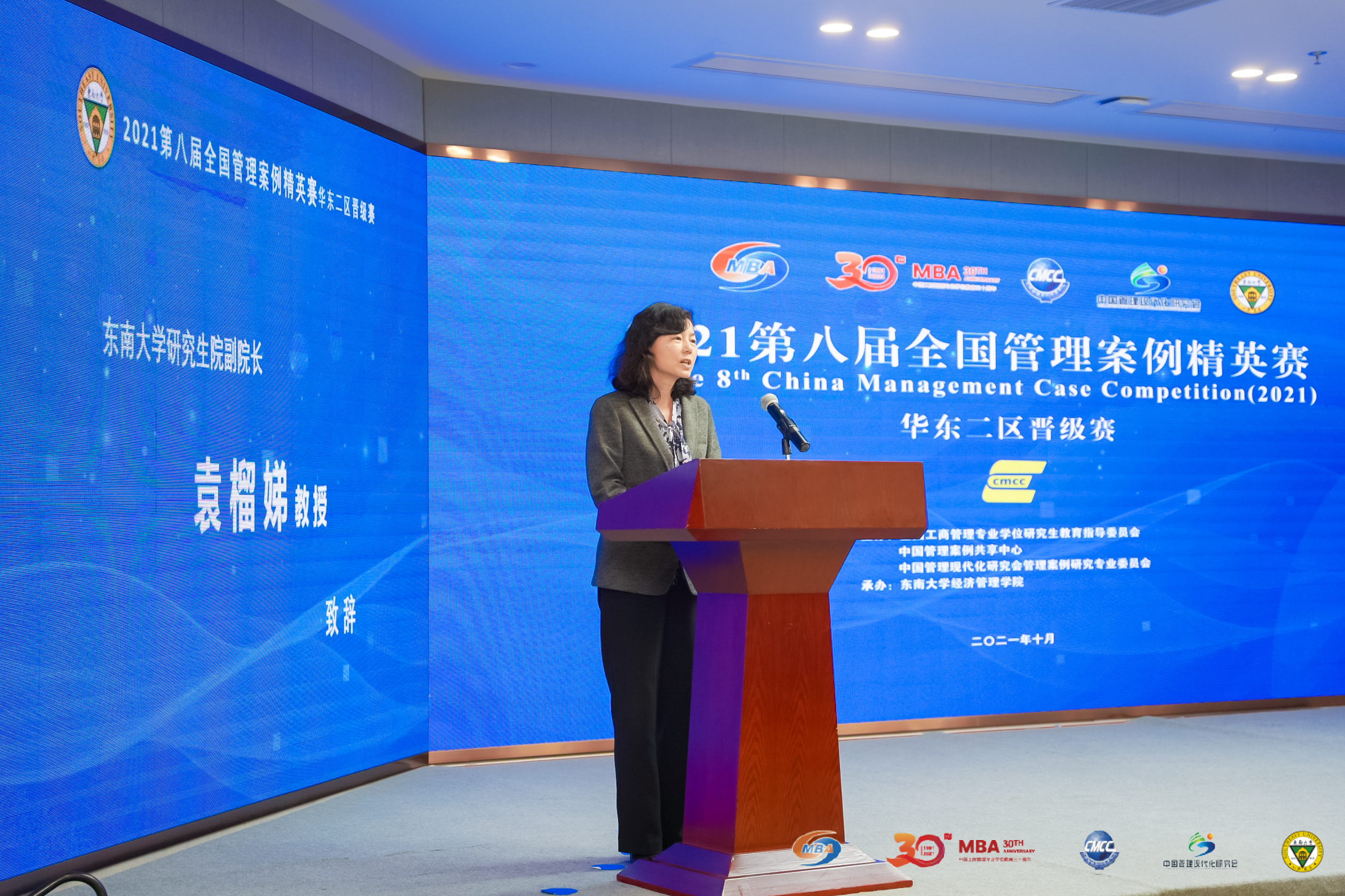东南大学研究生院副院长袁榴娣教授致辞。她说,MBA是我校第一个专业学位教育项目,在我校专业学位教育发展中发挥着重要作用。如何探索专业学位研究生实践能力的培养, MBA案例大赛,就是一条从企业案例研究这个入口解决专业学位研究生实践创新能力培养的一个有效途径。她希望MBA同学们通过案例赛这样的形式,把所学知识运用到实践之中,达到融会贯通,实现行知合一。
