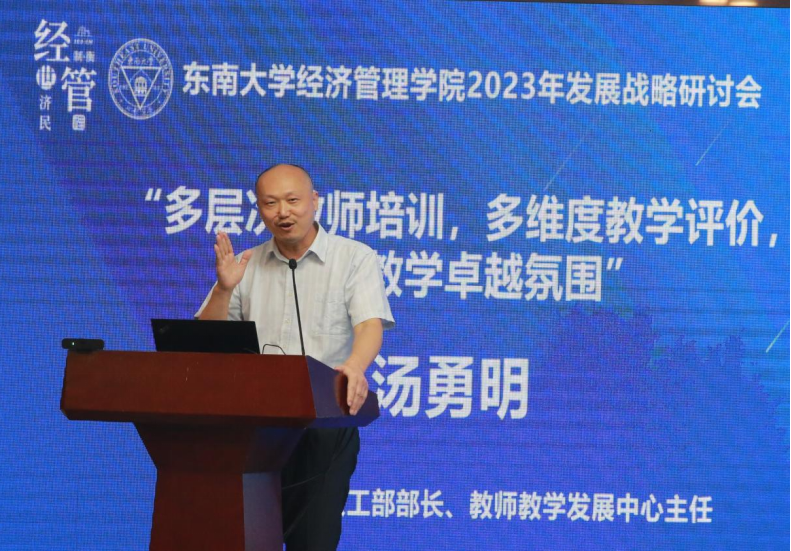 东南大学党委教工部部长教师教学发展中心主任汤勇明作报告