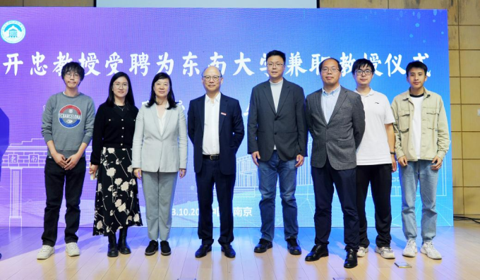 2023年10月20日下午,东南大学校长黄如院士为杨开忠教授颁发东南大学兼职教授聘书并佩戴校徽。