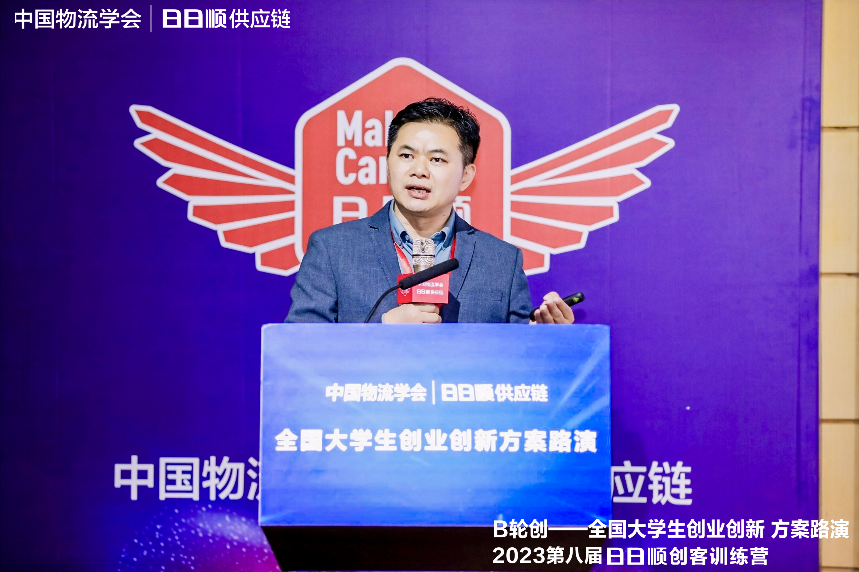 中国物流与采购联合会副会长、中国物流学会秘书长贺登才在启动会上表达了对“B轮创”协办方东南大学以及到场各位嘉宾的感谢,同时他肯定了同学们努力拼搏的创客精神,并针对物流行业发展趋势进行了分享。在谈及创新人才培养时,他表示,“日日顺创客训练营是培养创业创新人才的大舞台,中国的青年学子们需要抓住机会不懈努力,一起实现‘物流强国’的伟大目标。”