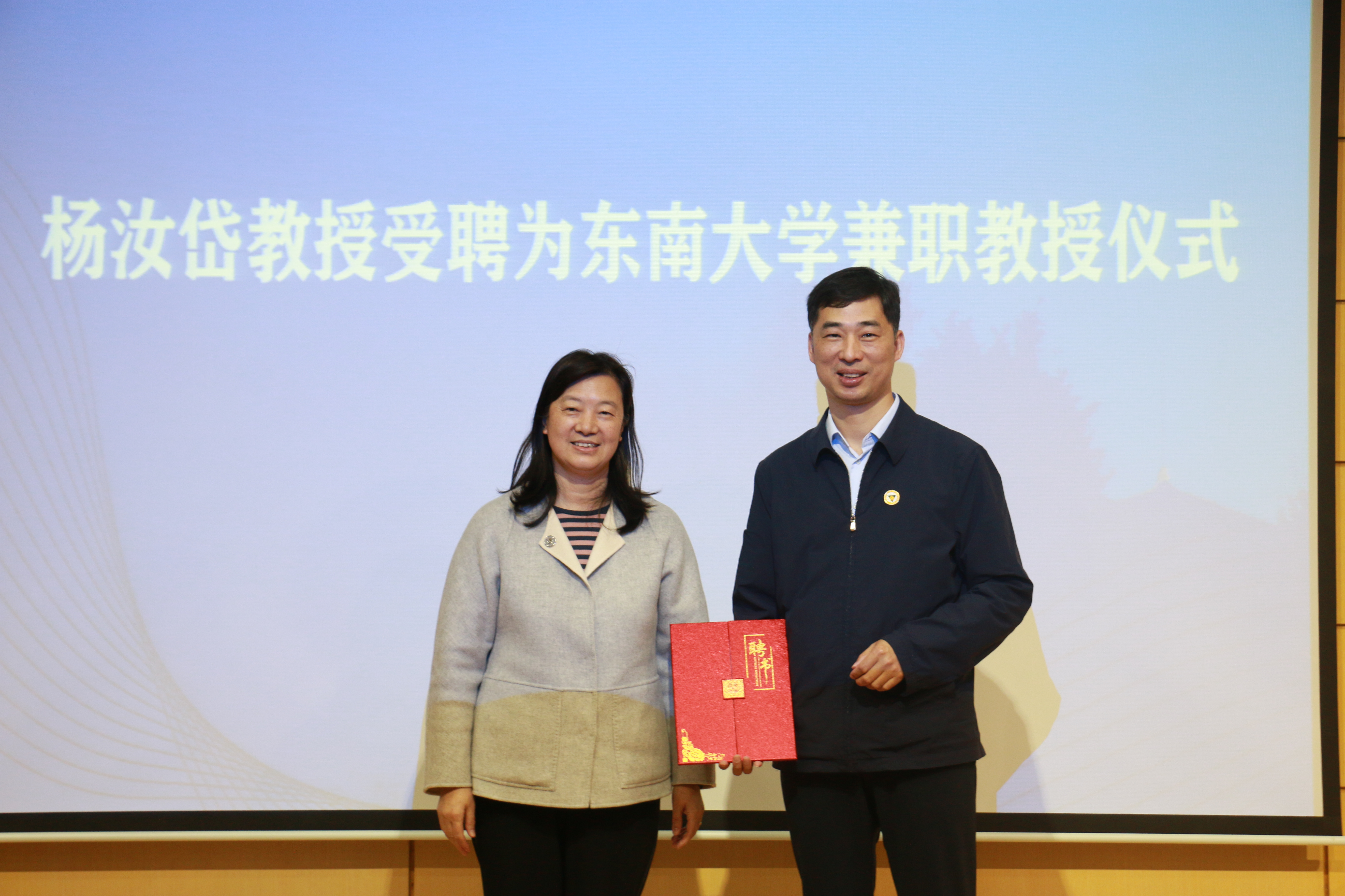 2023年11月10日下午,杨汝岱教授受聘为东南大学兼职教授仪式暨“数据、全要素生产率与产业发展”学术报告会在bet365亚洲官网 报告厅举行,bet365亚洲官网 党委书记袁健红为杨汝岱教授颁发东南大学兼职教授聘书并佩戴校徽。