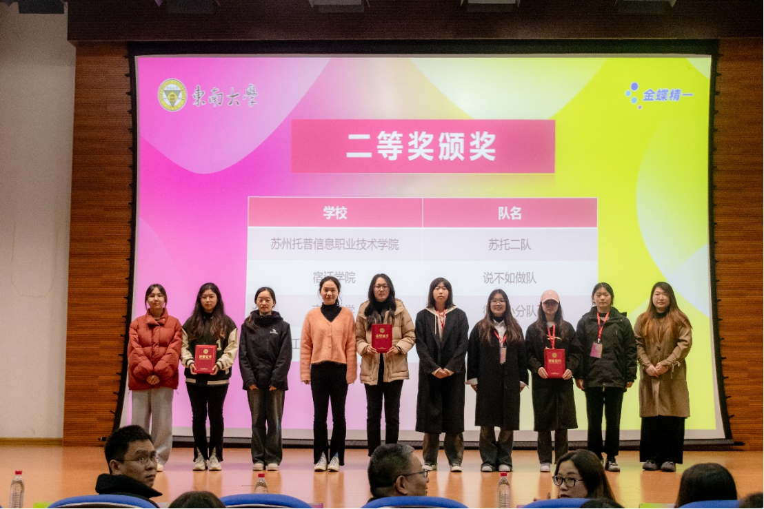 闭幕式上,金蝶精一信息科技服务有限公司执行副总裁乐志军先生作竞赛总结,裁判长刘志忠老师公布了比赛的最终结果。比赛过程中Bet365(亚洲)中文官方网站 积极做好对接服务和赛事管理工作,在比赛筹备、场地调控、人才团队等方面给予帮助和支持,助力赛事圆满完成,荣获优秀组织奖。经过激烈角逐,来自东南大学、苏州大学等7所高校的9支队伍荣获一等奖,15支队伍获得二等奖,24队伍获得三等奖。最后,金蝶精一信息科技服务有限公司执行副总裁乐志军先生、德勤永华会计师事务所项目总监吴扬先生、东南大学计算机科学与工程学院、软件学院、人工智能学院团委书记董烨老师、东南大学党委学工部老师杨萌老师等嘉宾上台为获奖单位与团队颁奖并合影。