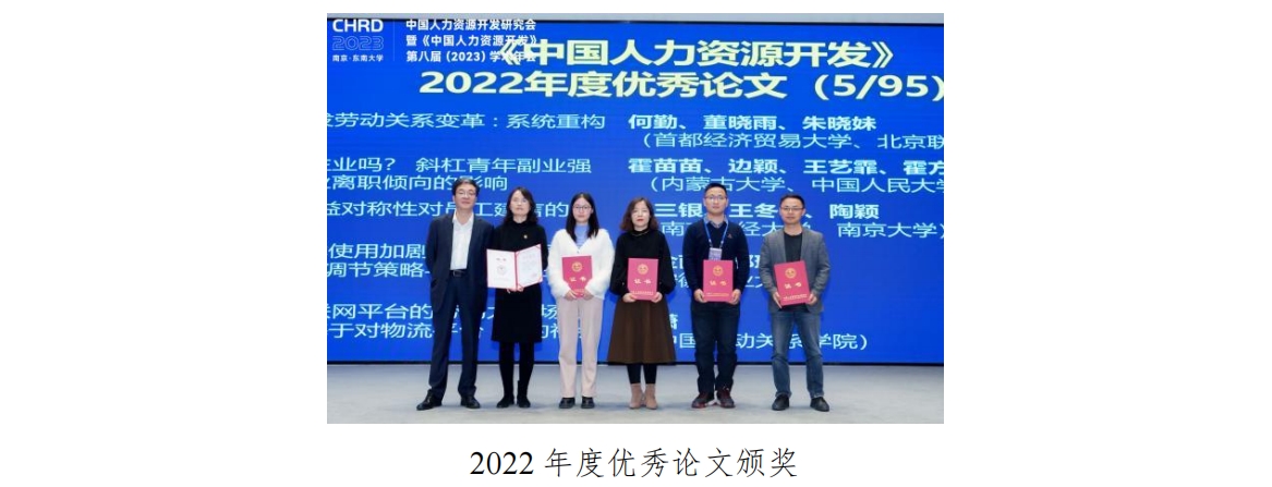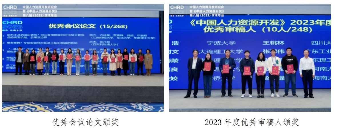 本次年会设立优秀会议论文奖,经过专家多轮匿名评审,本届论坛从268篇论文投稿中,共选出 15 篇优秀会议论文,由东南大学吕鸿江教授等为15位优秀会议论文作者颁奖。同时,还评选出《中国人力资源开发》10名优秀审稿人和《中国人力资源开发》2022年度的5篇优秀论文。